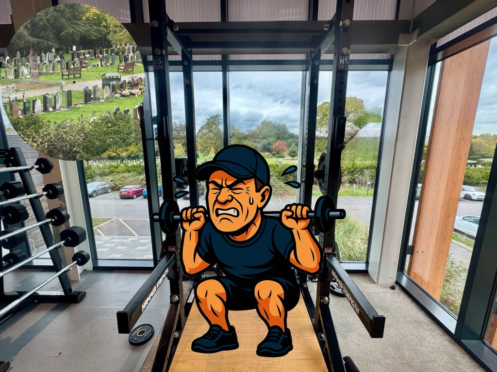 I used to have regular lower back issues, but air squats helped loosen things up. Apparently, countries that use squat toilets have fewer lower back problems — so maybe they’re onto something. I’ve been building up on the Smith machine for control, and recently switched to free squats (with a surprisingly inspiring view of a graveyard). I’m now at 70kg (20kg bar + 50kg plates), and with my weight down from 131kg to 90kg, bodyweight squats seem within reach. My front squat is shakier — 40kg feels precarious, perhaps because years of carrying a tuba on my back built my back squat but ruined my front.